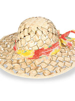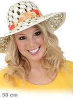Dieser helle Damenhut wurde aus naturfarbendem Stroh gefertigt und erinnert an Wasser, Sonne und Strand. Verziert mit einem bunten Hutband verbreitet er ein sommerliches Flair