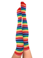 narrenwelt Overknees bunt geringelt 150 DEN Regenbogenfarben Rainbow Fasching Karneval Party Event JGA COSPLAY
