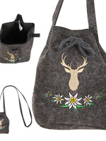 narrenwelt Tasche Beutel Bavaria grau Edelweiß Hirschgeweih Dirndl Tasche Bayern Wiesn Kostüm Accessoires 2808