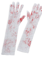 narrenwelt Netzhandschuhe mit Blutflecken Handschuhe weiß schauriger Charme Grusel Halloween Kostüm Accessoires Zombie Geisterstunde Cosplay