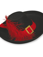- Musketierhut mit Riesenschnalle, rotem Band und roter Feder