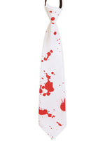 narrenwelt Krawatte mit Blut Halloween ca. 39 cm Horror Weiss mit roten Blutflecken