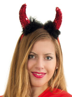 Lieferumfang: 1 Haarreif Teufelshörnchen rot mit Pailletten und mit Federbesatz