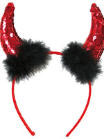 narrenwelt Haarreif Teufelshörner mit Paillletten und Federbesatz Horror Halloween Party Event