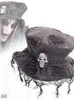 narrenwelt Hut Zombie Zombiehut mit Totenkopf und Spinnweben Hexerhut Horror Halloween Gothic ca 60cm Erwachsene