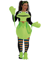 🐸 Spring in den Karnevalsspaß mit unserem Partyfrosch Kostüm! Dieses ausgefallene Unisex-Kostüm in Einheitsgröße ist die ideale Wahl für alle, die auf der Suche nach einem fröhlichen und farbenfrohen Outfit sind, das für gute Laune sorgt und gleichzeitig bequem zu tragen ist.🐸 Das Partyfrosch Kostüm ist im praktischen Vorbinder-Stil gestaltet und bietet so eine unkomplizierte Möglichkeit, sich im Handumdrehen in einen lustigen Frosch zu verwandeln. Die Vorderseite des Kostüms zeigt ein fröhliches Froschgesicht mit einem breiten Lächeln und einem detailreichen Körper, der sofort ins Auge fällt. An den Körper schließen sich bunt geringelte Beine an, die bis zu den Froschfüßen reichen. Diese Froschfüße sind als praktische Schuhüberzieher gestaltet, die einfach über Ihre Schuhe gezogen werden können und so für den perfekten Look sorgen. 🐸 Ein besonderes Highlight sind die beiden Bänder, die am Körper des Kostüms angenäht sind. An deren Enden befinden sich jeweils ein grüner Fäustling, der die Optik des Frosches wunderbar ergänzt und für zusätzlichen Spaß sorgt. Das Kostüm wird im Taillenbereich sowie im Nacken mittels Bindebändern geschlossen, was eine flexible Passform und einfaches An- und Ausziehen ermöglicht. 🐸 Material: 100% Polyester – leicht, langlebig und pflegeleicht. 🐸 Hinweis: Das abgebildete Zubehör gehört nicht zum Lieferumfang. 🐸 Das Partyfrosch Kostüm ist die perfekte Wahl für Faschingspartys, Karnevalsumzüge und alle anderen Gelegenheiten, bei denen gute Laune und Fröhlichkeit gefragt sind. Mit diesem Kostüm bist du immer ein echter Hingucker und verbreitest garantiert Spaß und Freude!