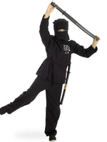 Ninja sind wohl die coolsten Kämpfer, die man sich vorstellen kann. Lautloses Anschleichen, Verstecken, Kämpfen mit den unterschiedlichsten Waffen, all das können die legendären Meister der asiatischen Kampfkunst. Und der schwarze Ninja übertrifft sie alle! Ein tolles Kostüm für abenteuerlustige Kinder.