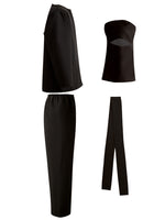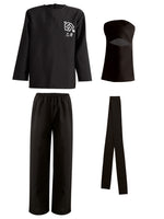 4tlg. Anzug: Oberteil + Hose mit Gürtel und Haube