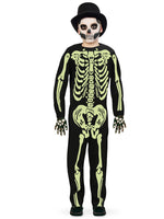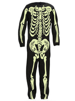 Welch schauriges Gerippe kommt daher und leuchtet auch noch........ Schlossgespenster tragen diesen Overall und sehen sehr gruselig damit aus. Die Vorderseite ist mit einem nachtleuchtenden Komplett - Skelett bedruckt, die Rückseite ist in gruseligem Nachtschwarz gehalten. Super - Kostüm für dein geisterhaftes Halloween - Outfit und deinen glänzenden Geisterauftritt