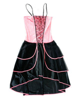 - Kleid mit Spaghettiträgern, Oberteil rosa mit schwarzem Spitzeneinsatz, Rock schwarz