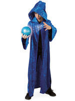 Umhang Zauberer/Magier blau mit Silbersternen und Kapuze