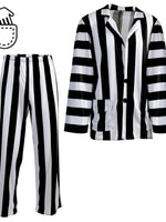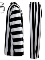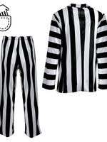 🖤🤍 Mit diesem 2-teiligen Lottergeist-Anzug wirst du garantiert zum schrillsten Hingucker auf jeder Party! Der schwarz-weiß gestreifte Stoff erinnert sofort an den berüchtigten Geistertrickser aus dem Kultfilm – ideal für Halloween, Fasching oder jede schräge Mottoparty. Der Anzug besteht aus einem Oberteil und einer passenden Hose, beide mit praktischen Taschen für kleine Utensilien oder einen schnellen Spuk-Trick. Dank 100 % Polyester ist das Kostüm angenehm leicht zu tragen – auch bei längeren Auftritten im Geisterreich.🖤🤍 Lieferumfang: Oberteil + Hose Design: Schwarz-weiß gestreift, mit Taschen Material: 100 % Polyester Anlässe: Halloween, Fasching, Karneval, Mottoparty, Filmkostüm